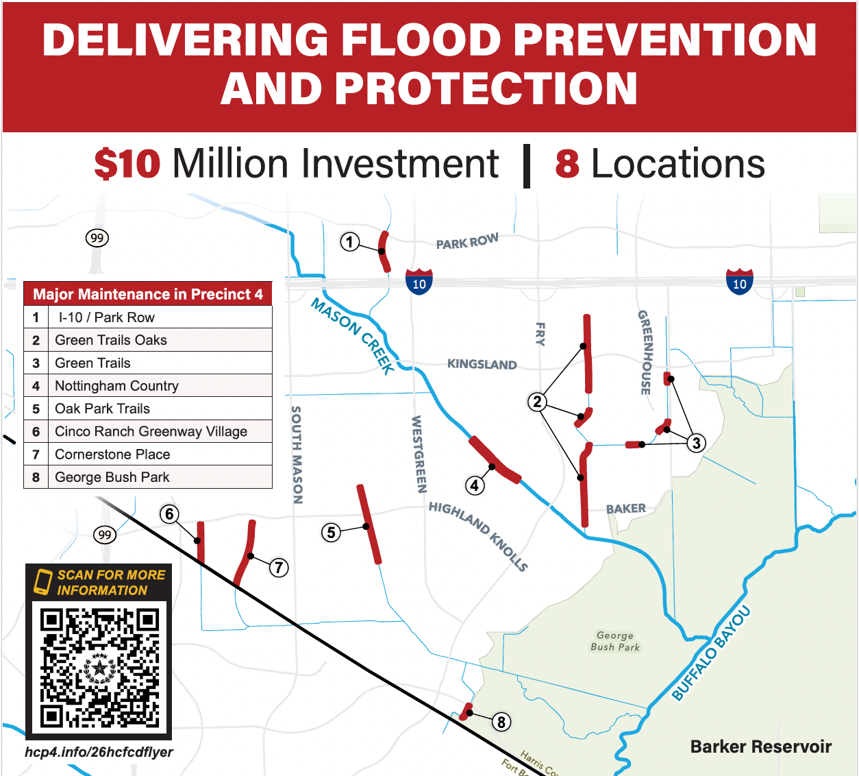 The project spans eight initial locations identified by HCFCD, including: