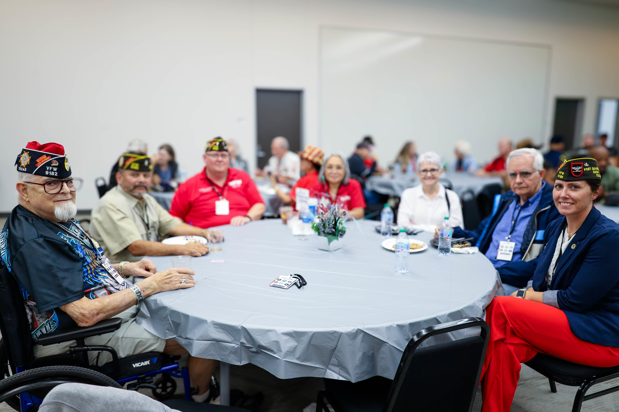 | Members of VFW Post 9182 and Auxiliary gather for fellowship during a community event in Katy, Texas, honoring local veterans and their continued service beyond the uniform. (Source: Katy ISD) |