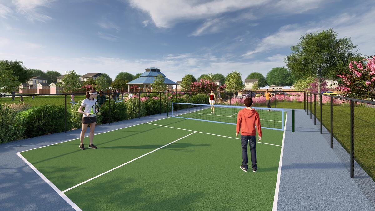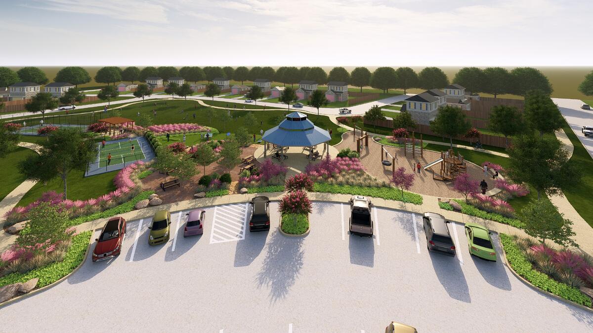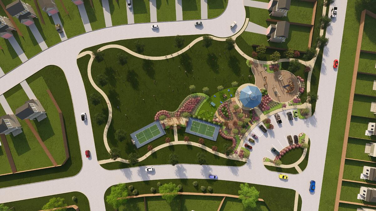 The Haven will serve as a vibrant community gathering space at Bluestem, designed to bring neighbors together through recreation, relaxation, and outdoor enjoyment. This thoughtfully planned amenity will feature shaded pavilion seating, picnic areas, and scenic walking paths surrounded by lush landscaping and open green space perfect for casual play and community events. Residents will also enjoy active recreation with pickleball courts, a playground, and a unique putting green area, creating opportunities for all ages to stay active and connect. With its blend of inviting gathering spaces and family-friendly activities, The Haven will be a central hub where Bluestem residents can unwind, play, and build lasting community connections.