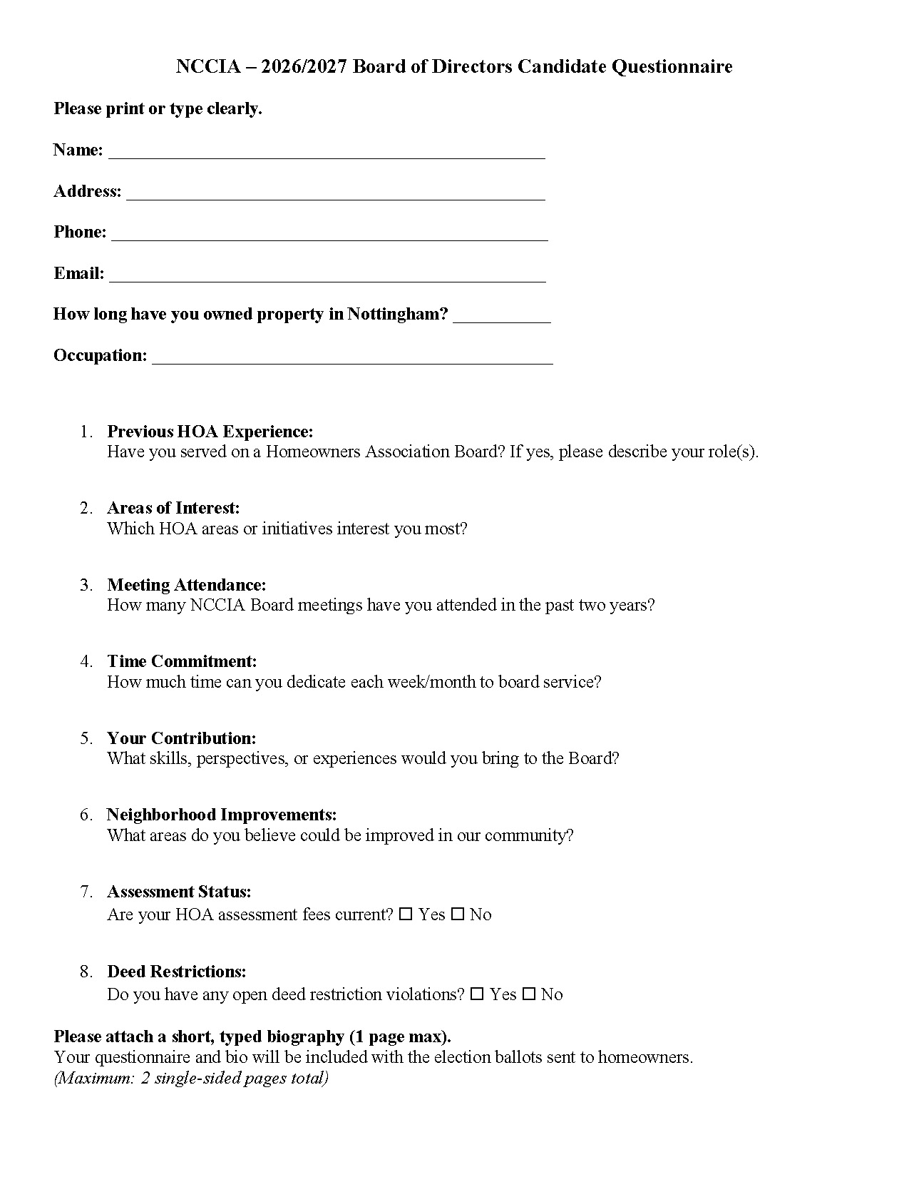 NCCIA – 2026/2027 Board of Directors Candidate Questionnaire