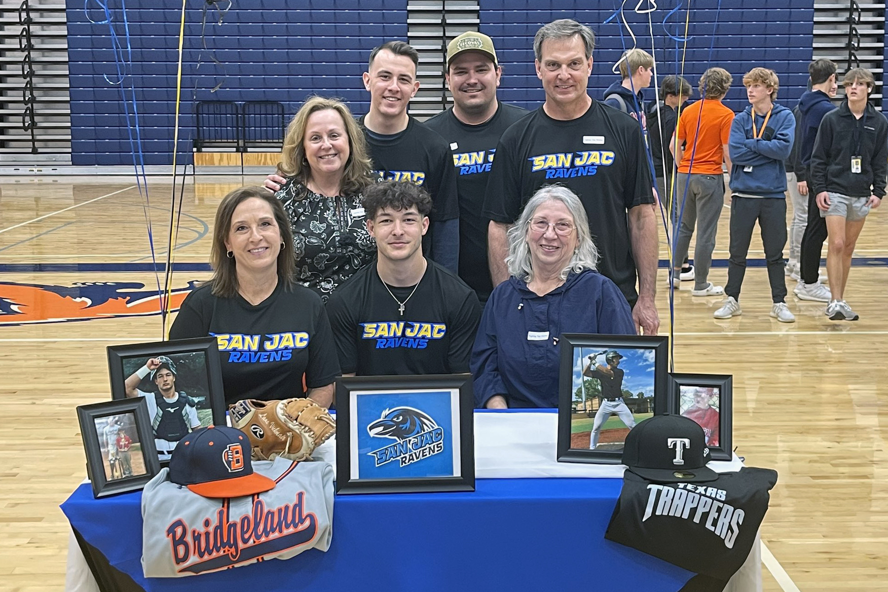 Bridgeland High School senior Lane Vicknair, seated center, poses with his family after signing his letter of intent to play baseball at San Jacinto College.