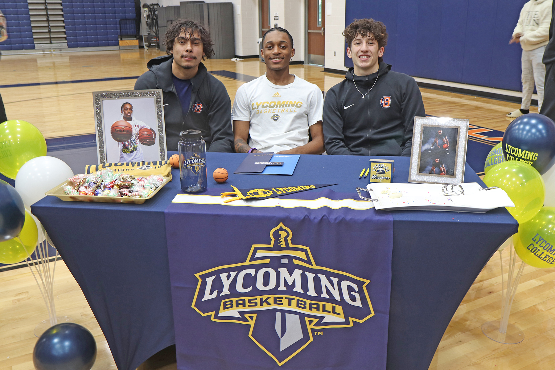Bridgeland High School senior Aiden White, center, signed a letter of intent to play basketball at Lycoming College. (Photo by Avery McGoldrick, Bridgeland HS)