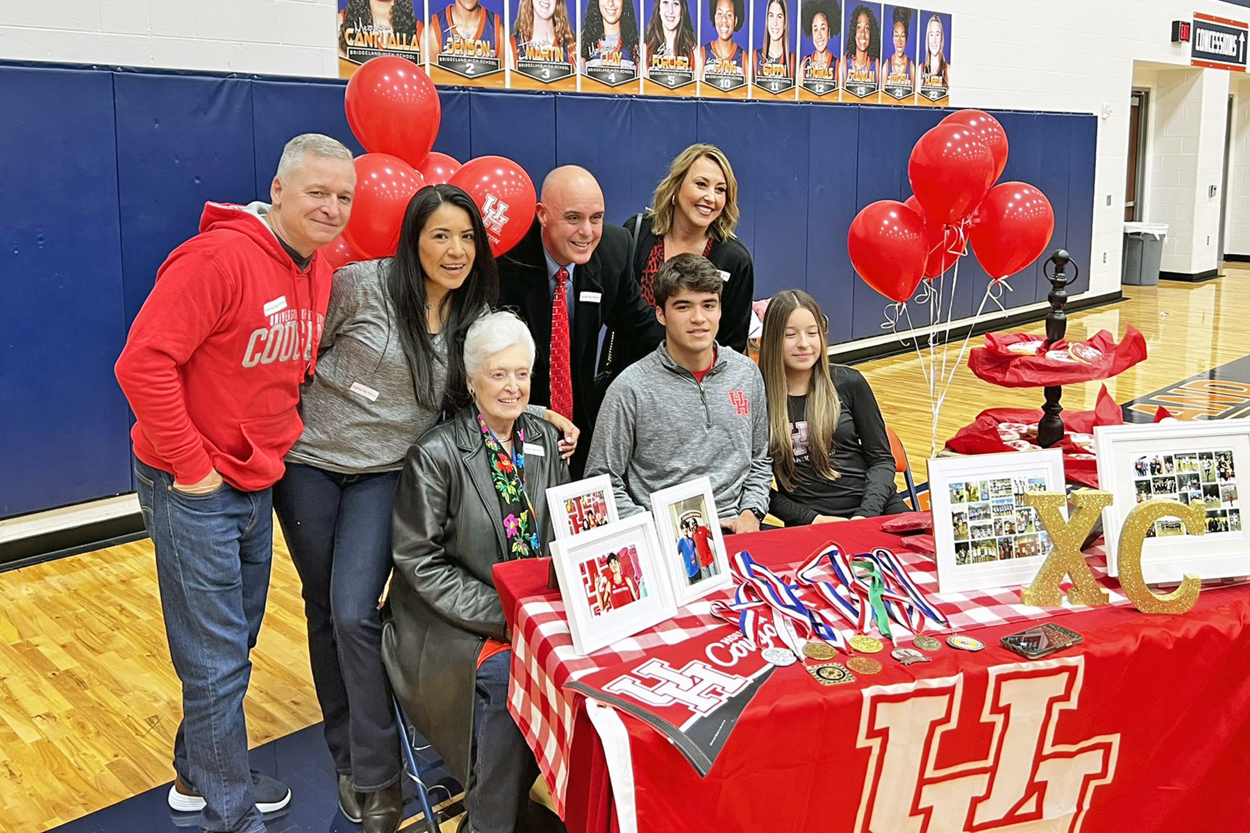 Bridgeland High School senior Alan Bonner, seated center, poses after signing his letters of intent to the University of Houston.
