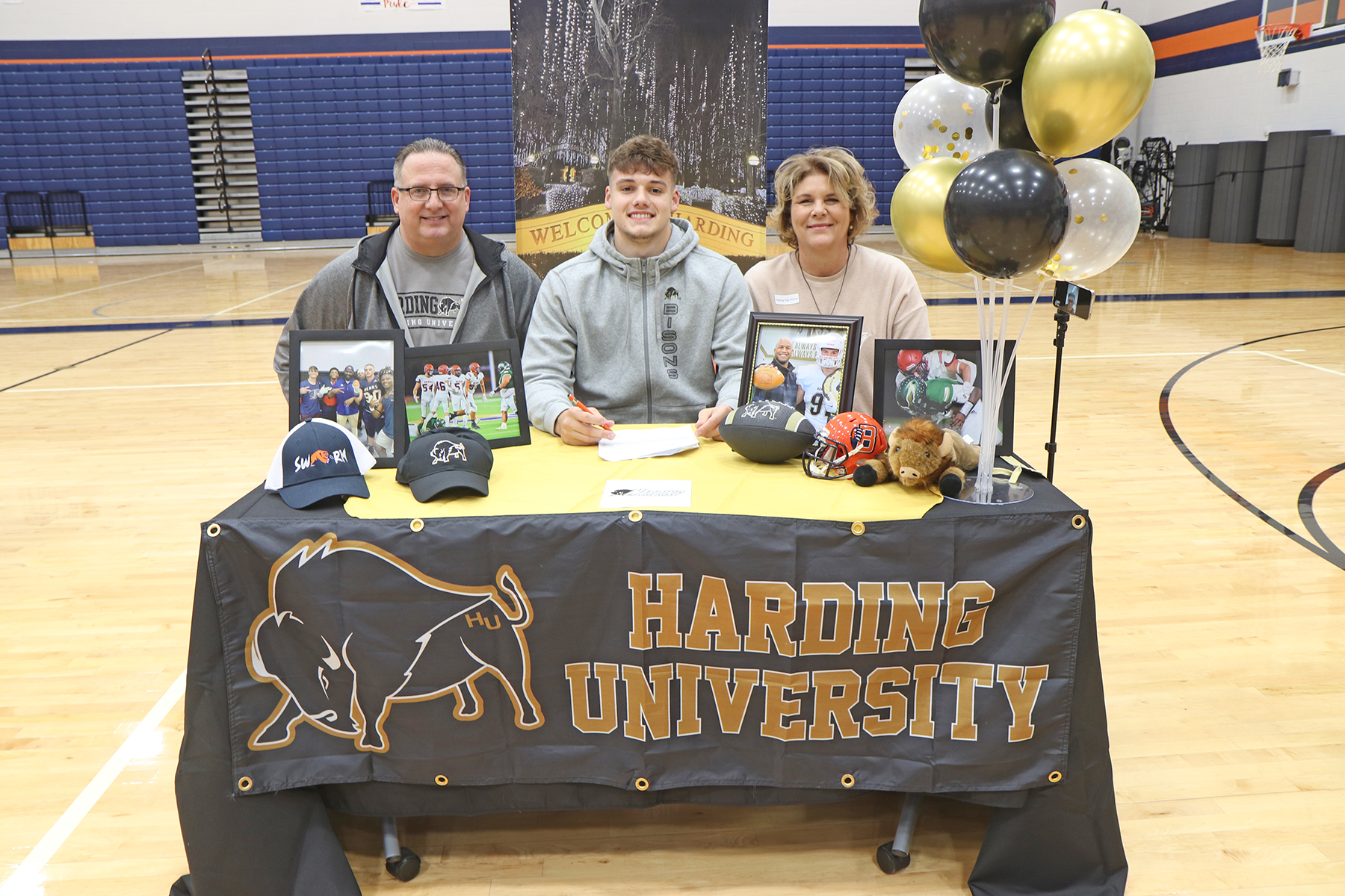 Bridgeland High School senior Brock Knapton, center, signed his letter of intent to play football at Harding University. (Photo by Avery McGoldrick, Bridgeland HS)