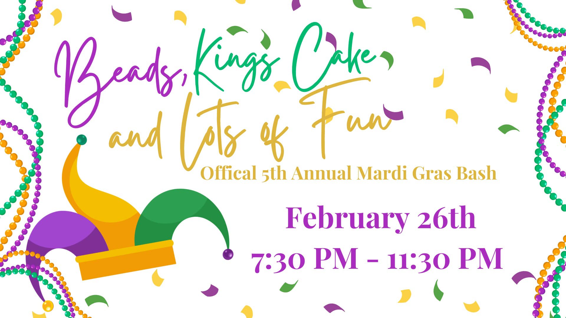 Kings Cake, Hurricanes, Music, raffles, and more! It will be such a fantastic time that you won’t want to miss. You better fight for your right to Mardi!!