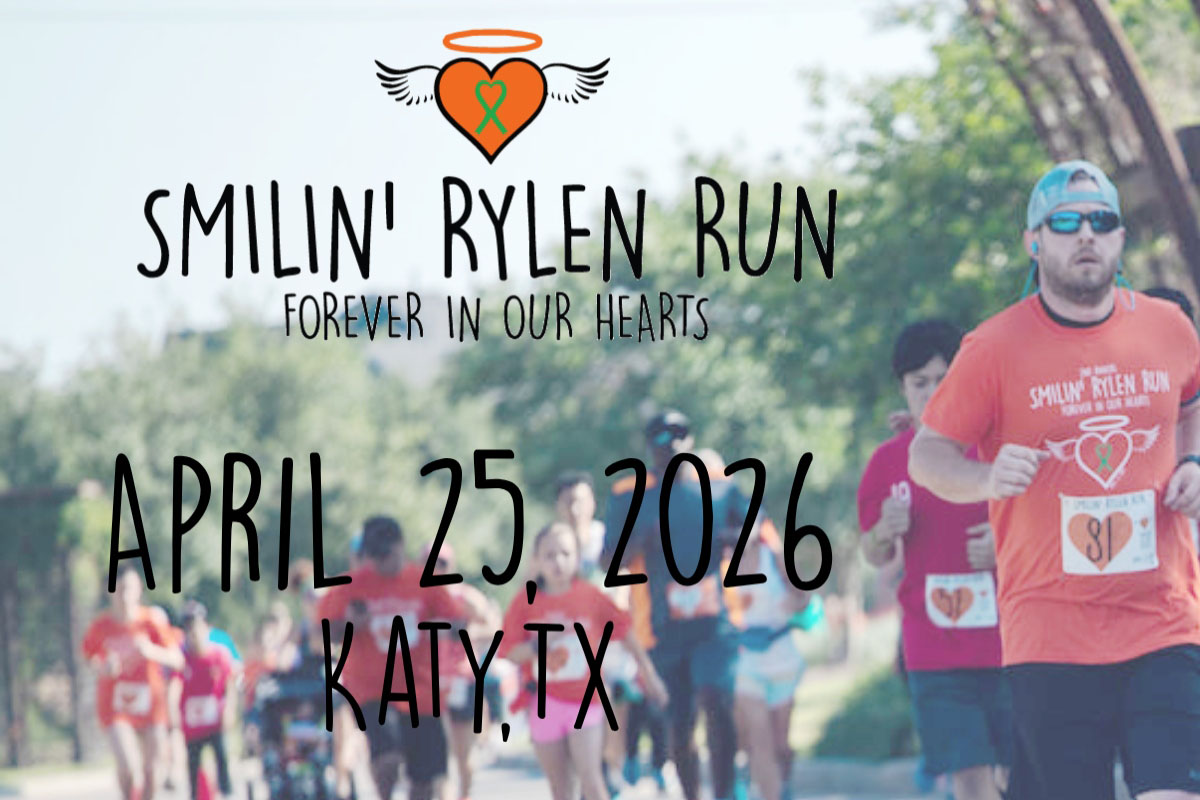 The Smilin' Rylen Run at the University of Houston at Katy is a community road race honoring organ donation and supporting families in crisis, featuring timed 10K and 5K races plus a 1-mile family run.