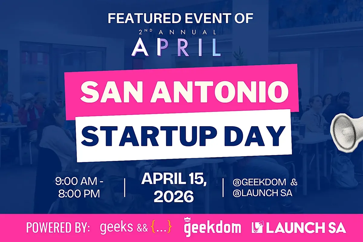 AI April: San Antonio Startup Day is a full‑day lineup of talks, workshops and networking hosted at Geekdom (and Launch SA spaces) in downtown San Antonio, focused on AI, startups and local ecosystem resources.