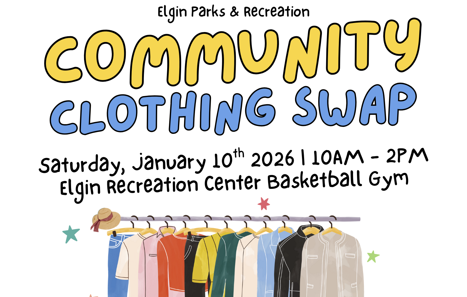 The Community Clothing Swap at the Elgin Recreation Center feels like a community closet cleanout—neighbors bring gently used items, tables fill with finds for all ages and families get to shop without spending a cent.