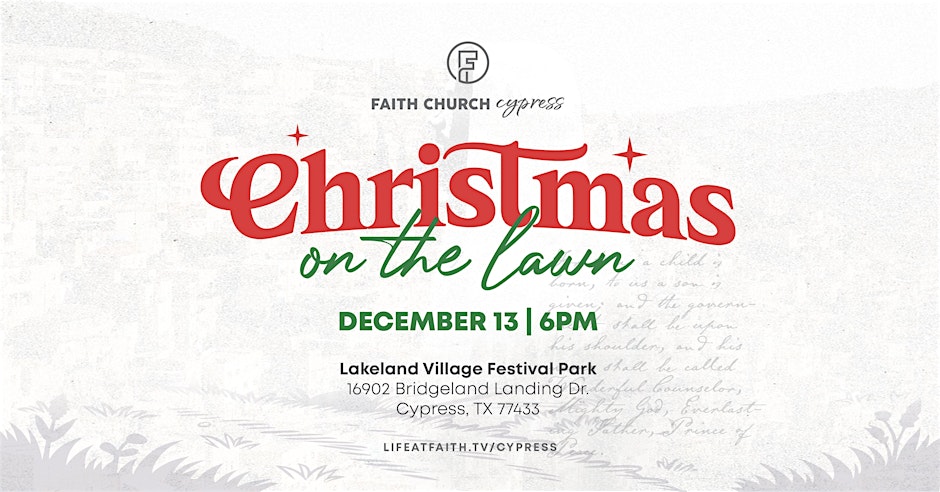 Cypress Christmas on the Lawn at Festival Park in Bridgeland brings neighbors together for a relaxed evening under the stars. Hosted by Faith Church Cypress, this free event turns the park into an outdoor movie night with a classic Christmas film on the big screen.