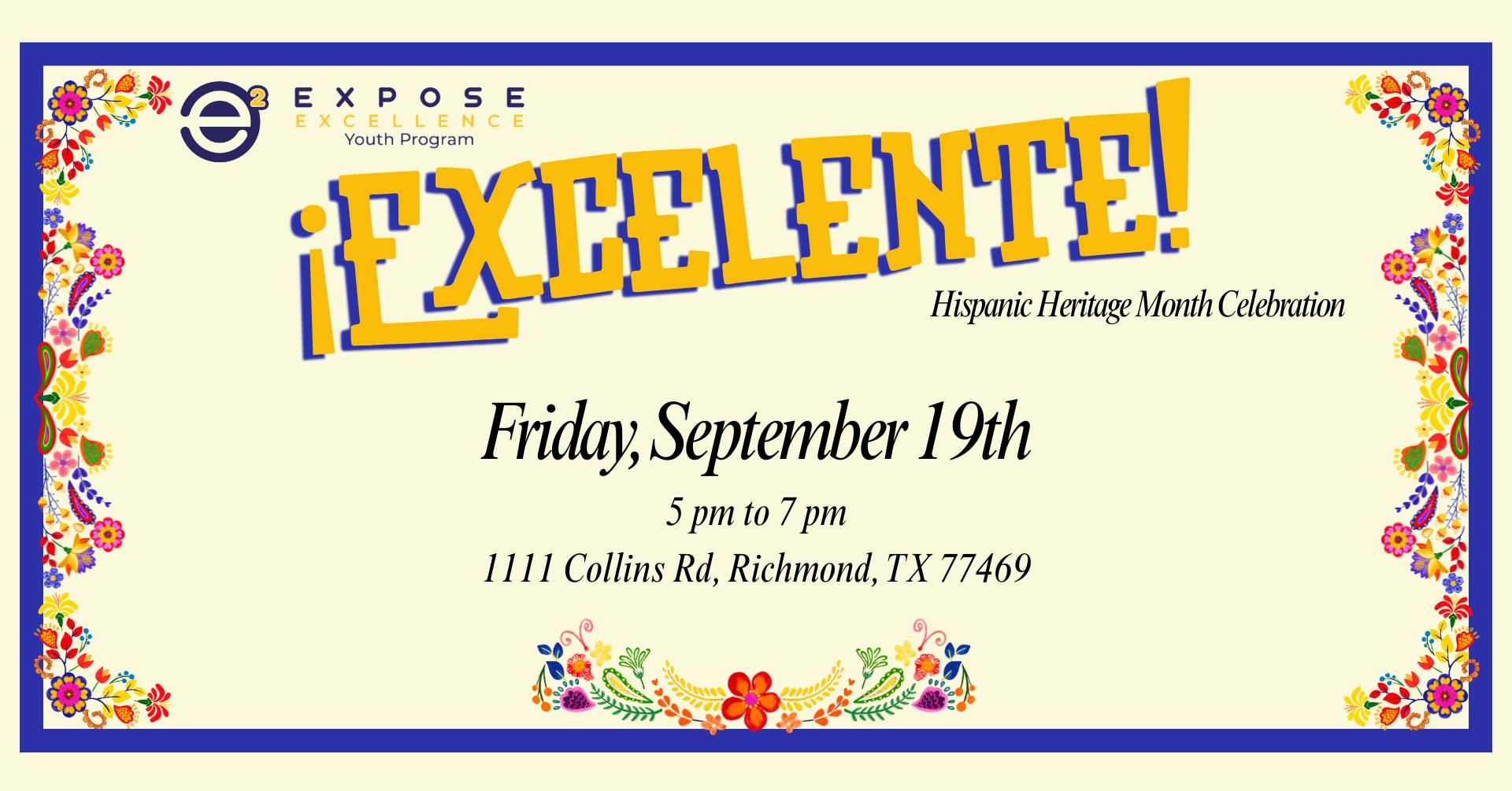 Celebrate culture, creativity, and community spirit at ¡Excelente!, a dynamic Hispanic Heritage Month celebrationhosted by the Expose Excellence Youth Program (EEYP). Set for Friday, September 19 from 5:00 to 7:00 PM, this free public event will take place at the Mamie George Community Center located at 1111 Collins Rd, Richmond, TX 77469.