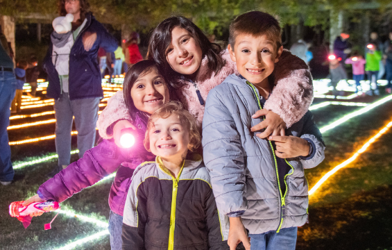 Families can explore by moonlight, navigate the giant light maze, enjoy campfire stories, stargaze, and learn about animal nightlife with Garden educators.