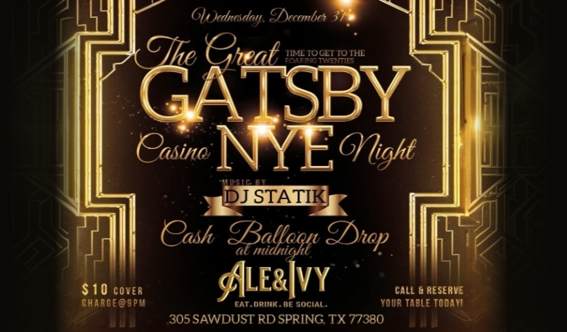 The Great Gatsby Casino New Year’s Eve Night at Ale & Ivy in Spring is a dress-to-impress celebration where Jazz Age glamour meets a lively countdown to 2026.