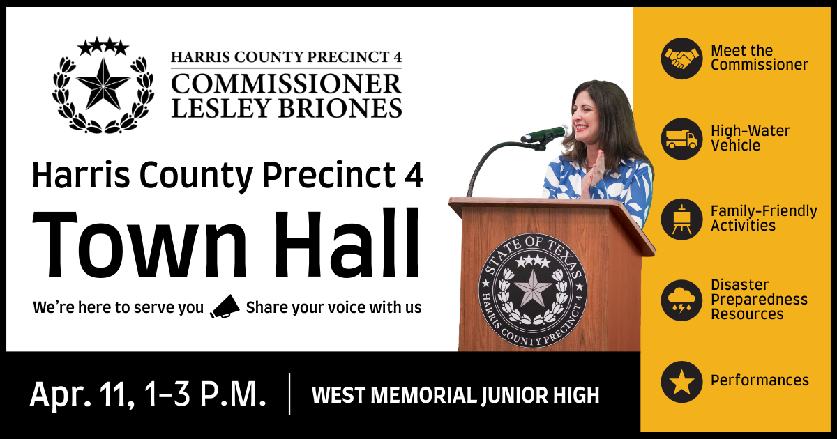 The event will provide residents with an opportunity to meet Commissioner Briones, hear updates about local infrastructure and community projects, and connect with services and resources available through Harris County Precinct 4.