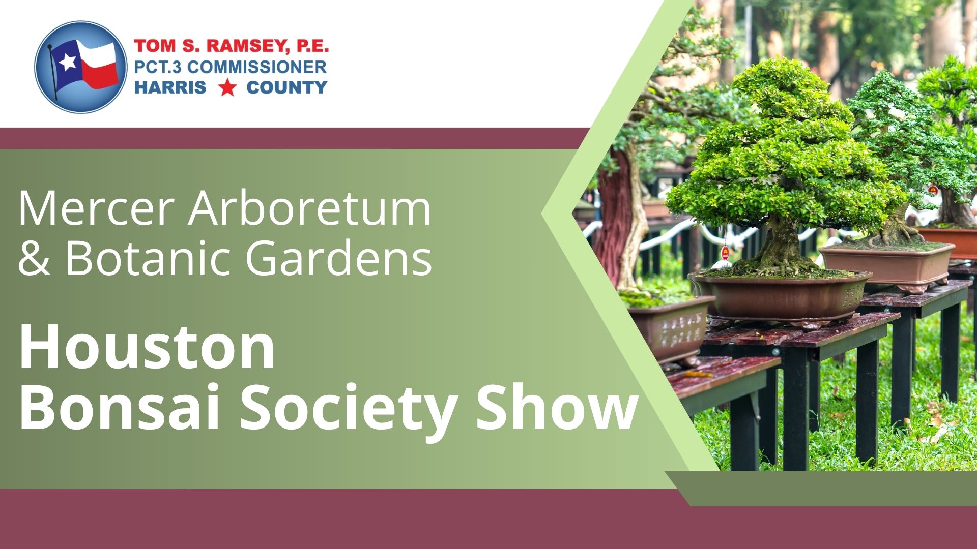 Nature lovers, plant enthusiasts, and curious minds alike are invited to immerse themselves in the timeless tradition of Bonsai during the Houston Bonsai Society’s Annual Fall Show, hosted in partnership with Mercer Arboretum and Botanic Gardens and the Office of Commissioner Tom S. Ramsey, Harris County Precinct 3.