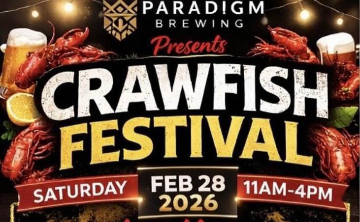 The Paradigm Brewing Crawfish Festival at Paradigm Brewing Company (2130 S. Persimmon Ln) in Tomball celebrates crawfish season with live music, market vendors and family activities.