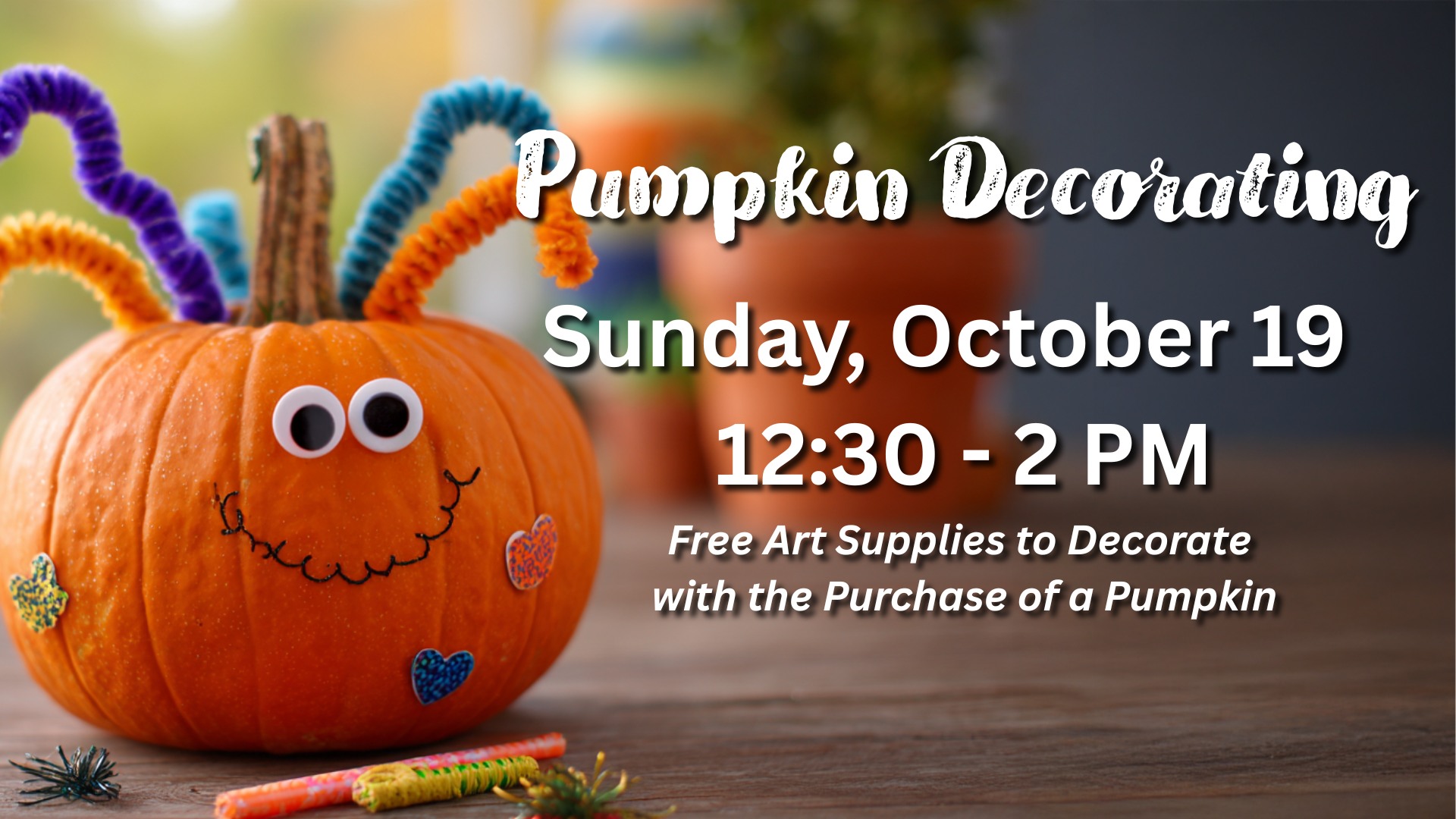 On Sunday, October 19, from 12:30 to 2 PM, visitors can purchase a pumpkin in their community-favorite Pumpkin Patch and enjoy free art supplies to decorate it right in the patch. This family-friendly activity is perfect for all ages and a fun way to celebrate the season surrounded by pumpkins, smiles, and community spirit.