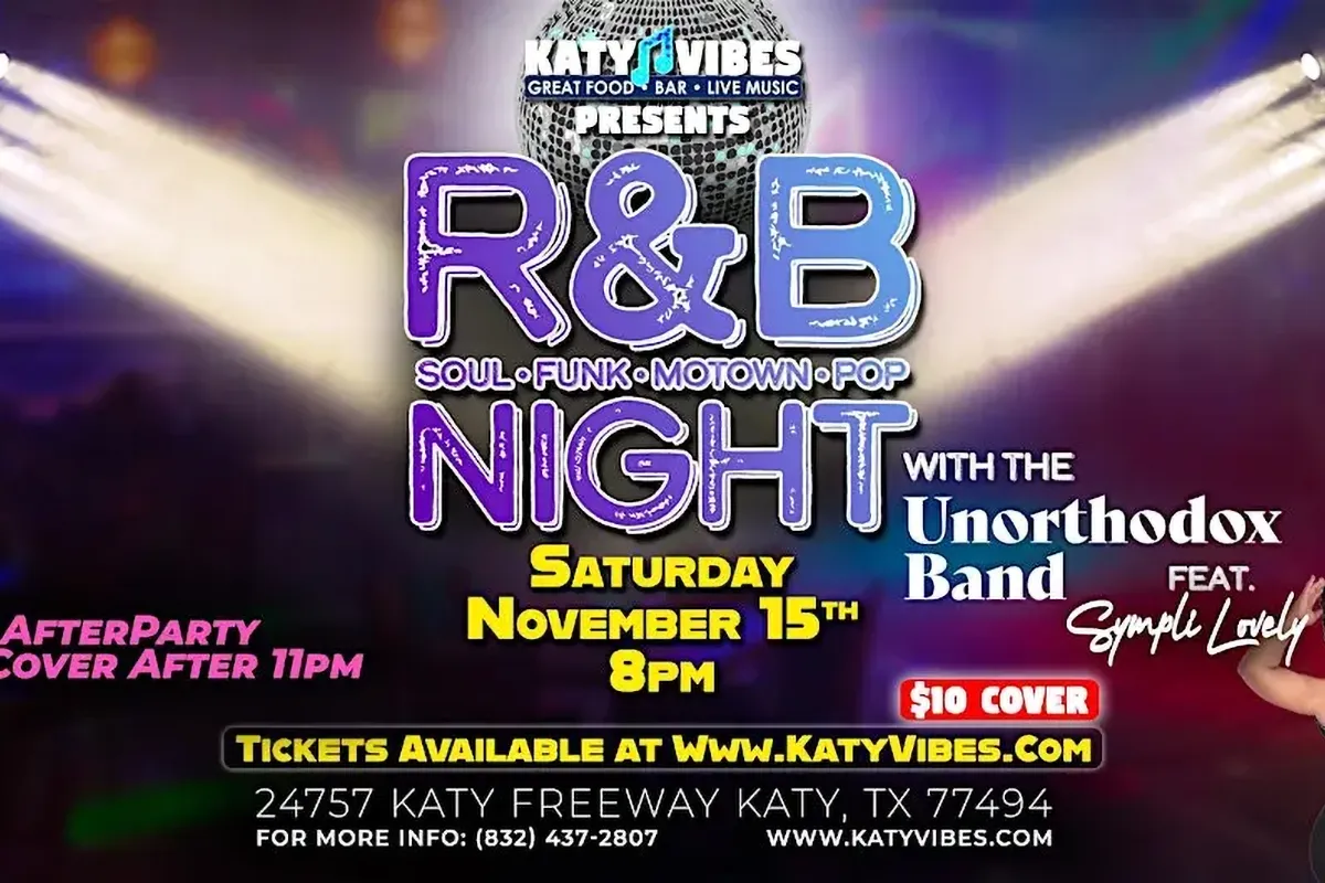 R&B Night at Katy Vibes brings the Unorthodox Band to a lively dining-and-music setting in Katy, blending soul, funk, and crowd favorites.