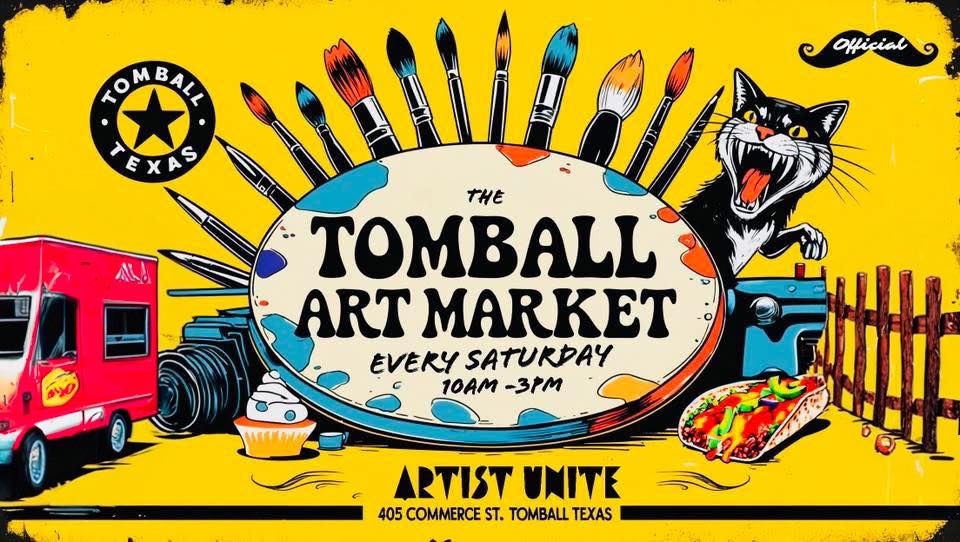 Browse booths with handmade art, crafts, soaps, candles, and more at the Tomball Art Market, running 9:30 AM–3:30 PM.