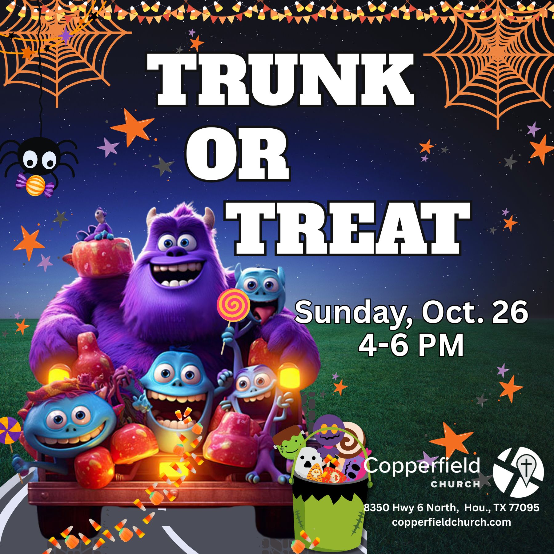 Copperfield Church invites families and friends to an evening of Halloween fun at its annual Trunk or Treat celebration. The event will take place on Sunday, October 26, from 4–6 p.m., offering a safe, festive, and candy-filled experience for children of all ages.