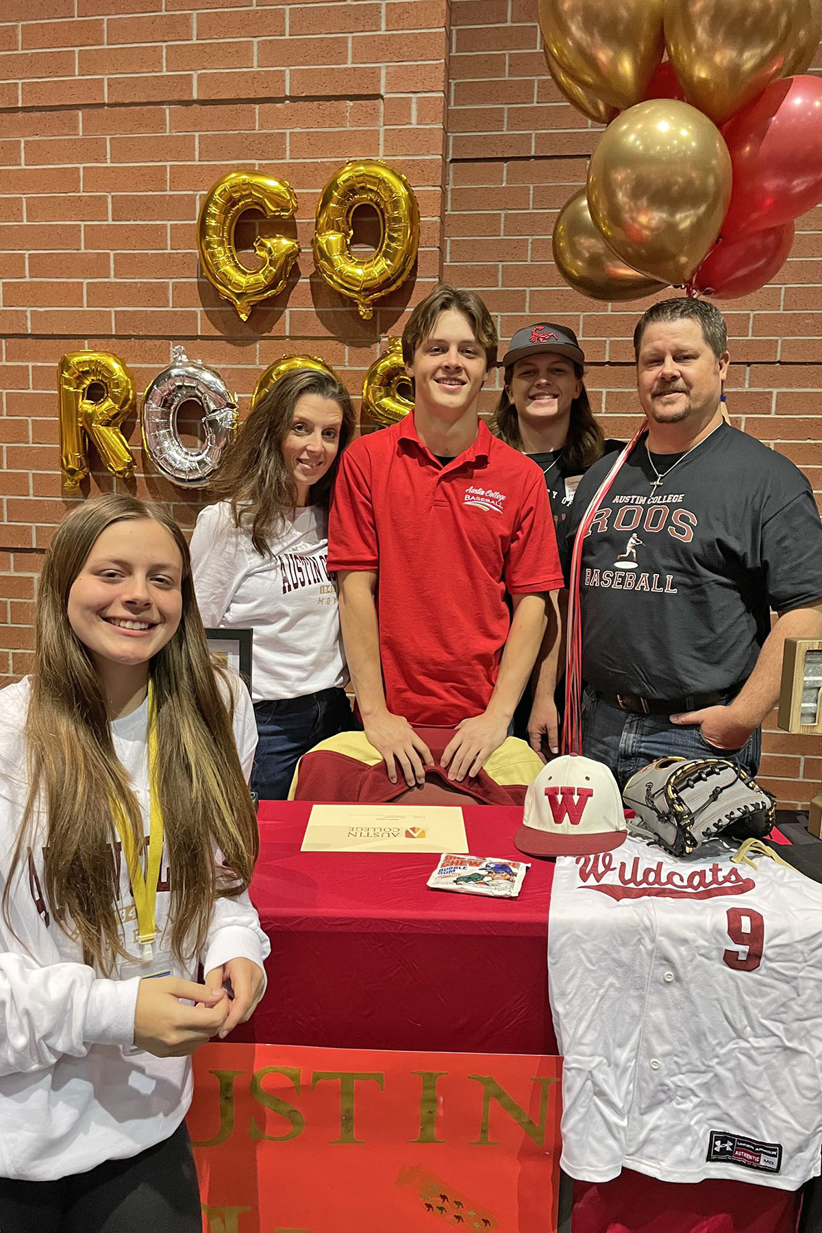 Cypress Woods High School senior Kaden Stegent, center, signed a letter of intent to play baseball at Austin College.