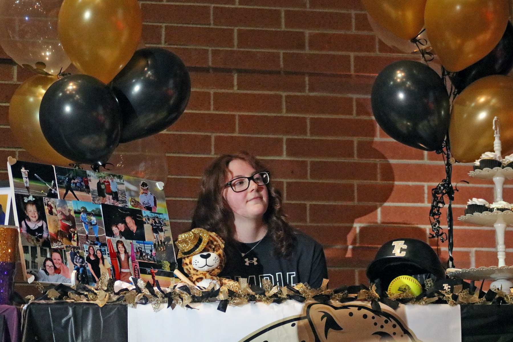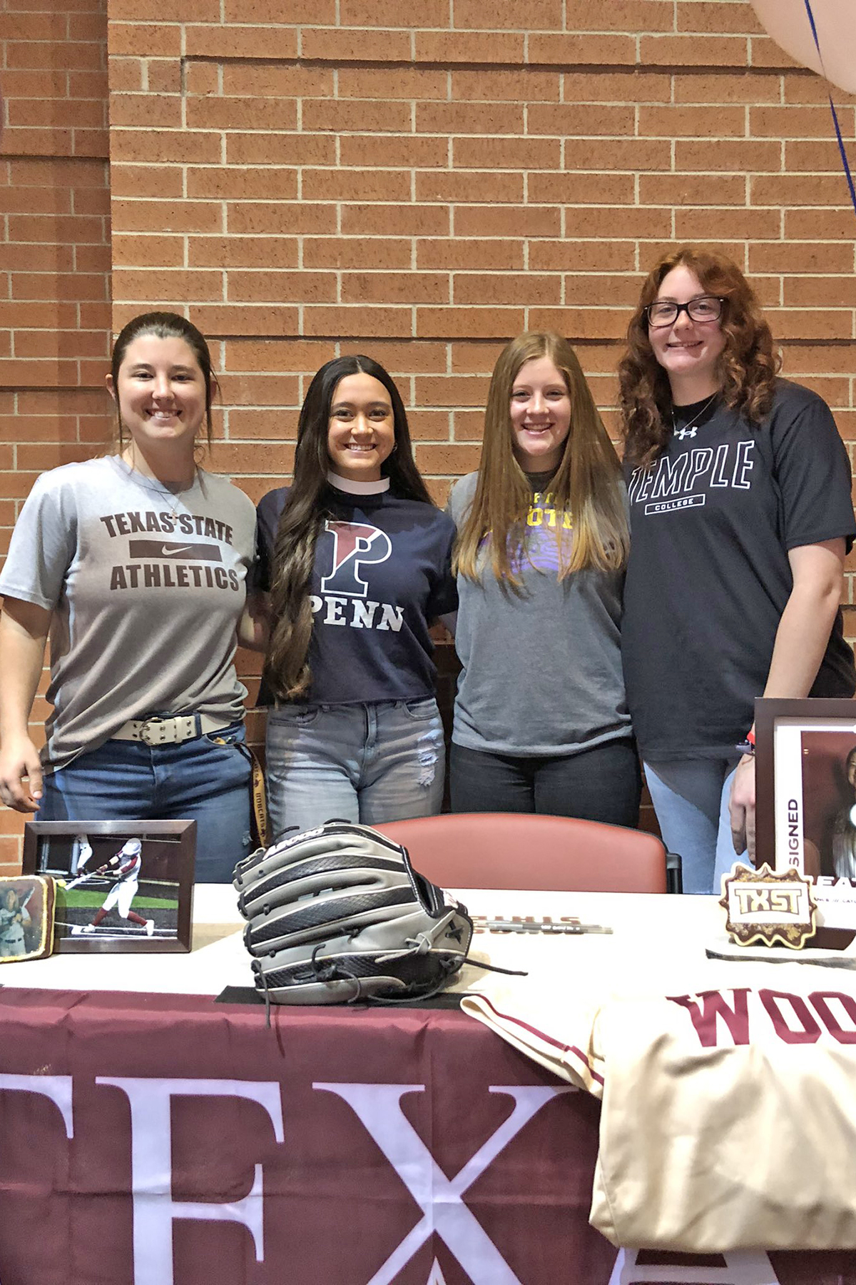 Four Cypress Woods High School senior softball players pose for photos at the school’s signing day ceremony on Feb. 1.