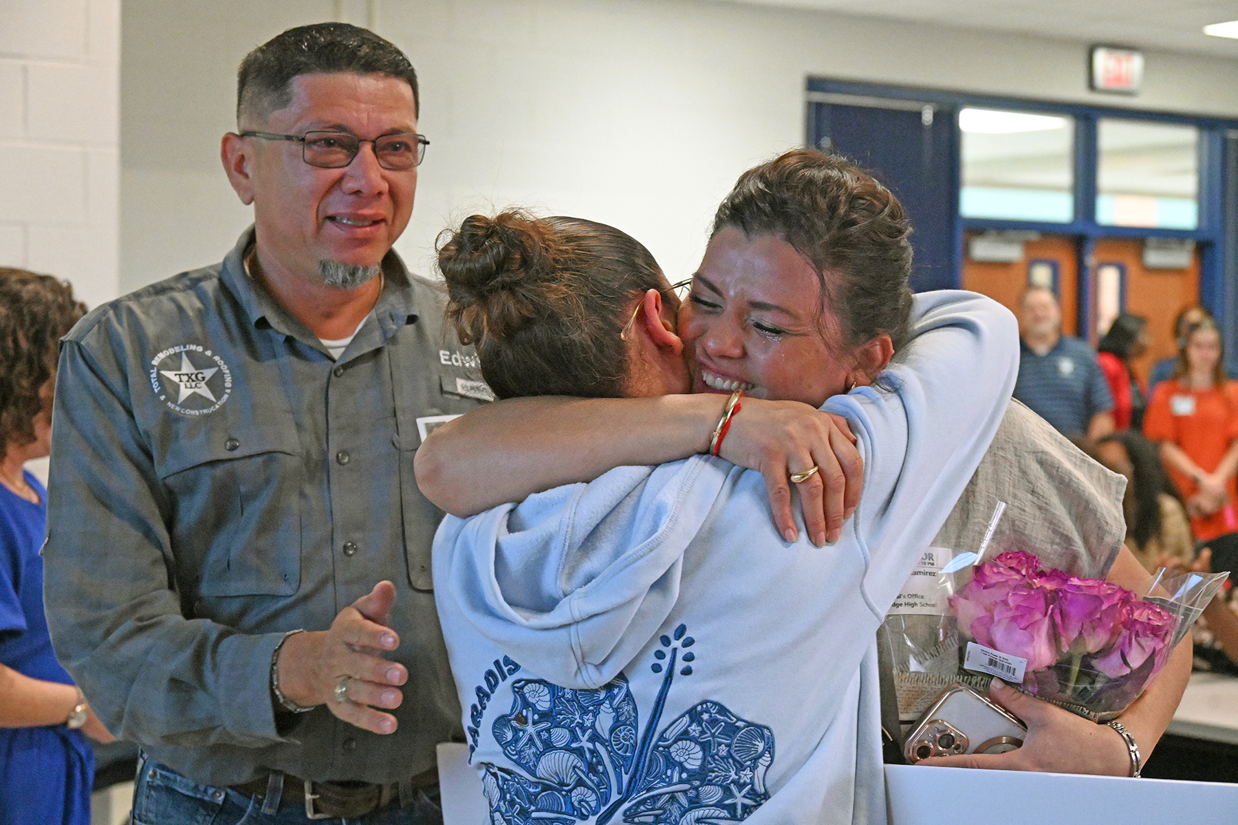 Her parents, Edwin and Dinora Ramirez, were on hand to witness the announcement and celebrate their daughter’s hard work, along with members of the Cypress Ridge wrestling team, cheerleaders, campus leadership, and fellow classmates.