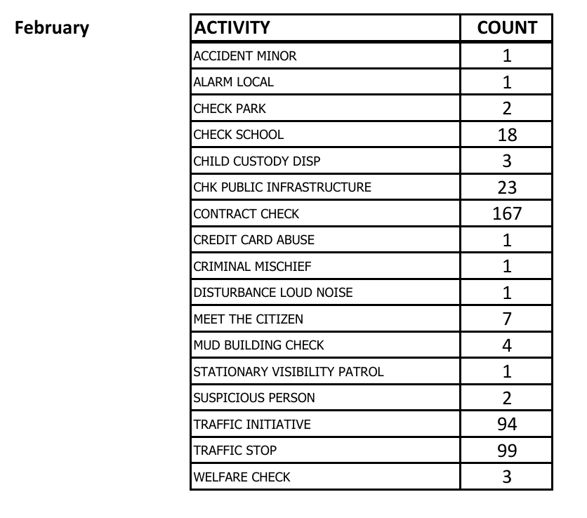 February 2026 Patrol Report for Williamsburg Settlement