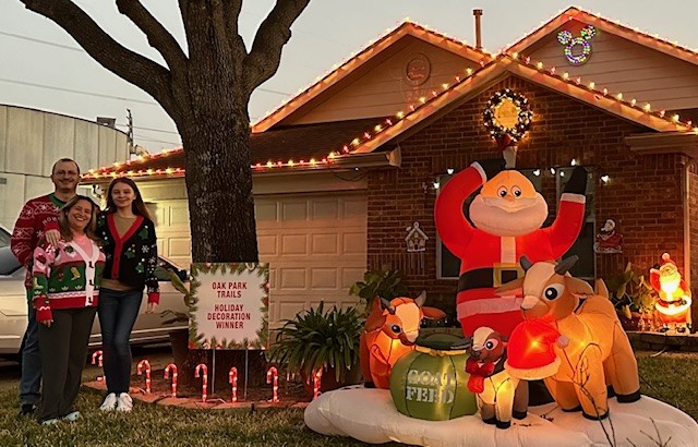 Holiday spirit was in full swing this season in Oak Park Trails, where neighbors once again brought their creativity and cheer to the annual Holiday Decoration Contest. With sparkling rooftops, glowing reindeer, inflatable Santas, and streets filled with festive light, it was clear—this community knows how to celebrate.