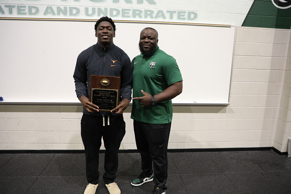 A four-star recruit and the No. 9 ranked pass rusher in the nation by 247 Sports, Okpala has been a force on the field throughout the 2025 season. His fierce tackles and unmatched work ethic earned him a scholarship to the University of Texas, where he’s set to join the Longhorns and compete in the SEC. He’ll begin his collegiate journey as early as January, having completed his graduation requirements early.