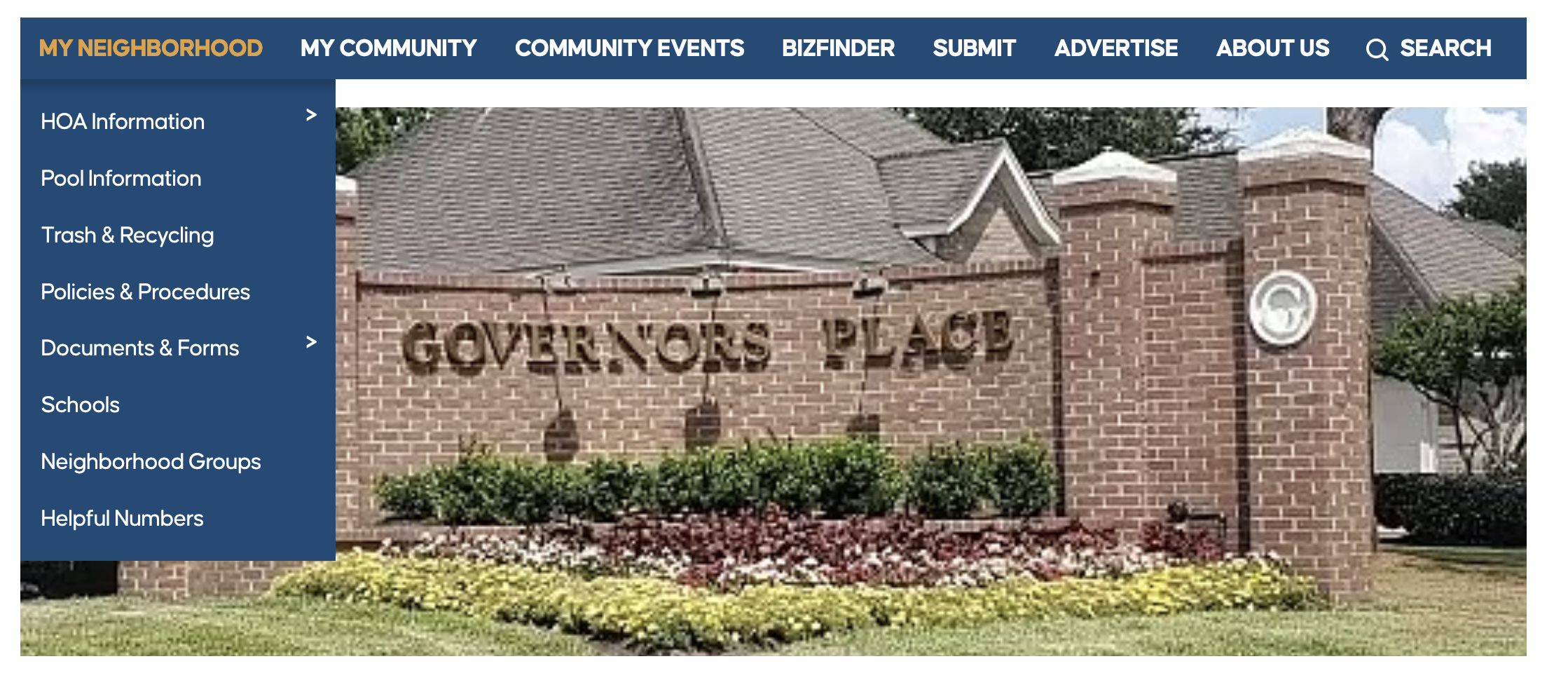 You can find all your trash information in the drop down menu on the Governor's Place "My Neighborhood" page at https://myneighborhoodnews.com/governors-place-trash-and-recycling