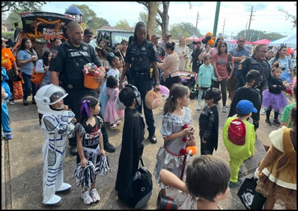 In addition to the vibrant festivities, the event included interactive public safety activities such as fingerprinting stations for kids, allowing the Sheriff’s Office to foster connections with families in a lighthearted and informative way. HCSO deputies didn’t just supervise—they participated, dancing with children, mingling with residents, and cheering on costume contest participants.