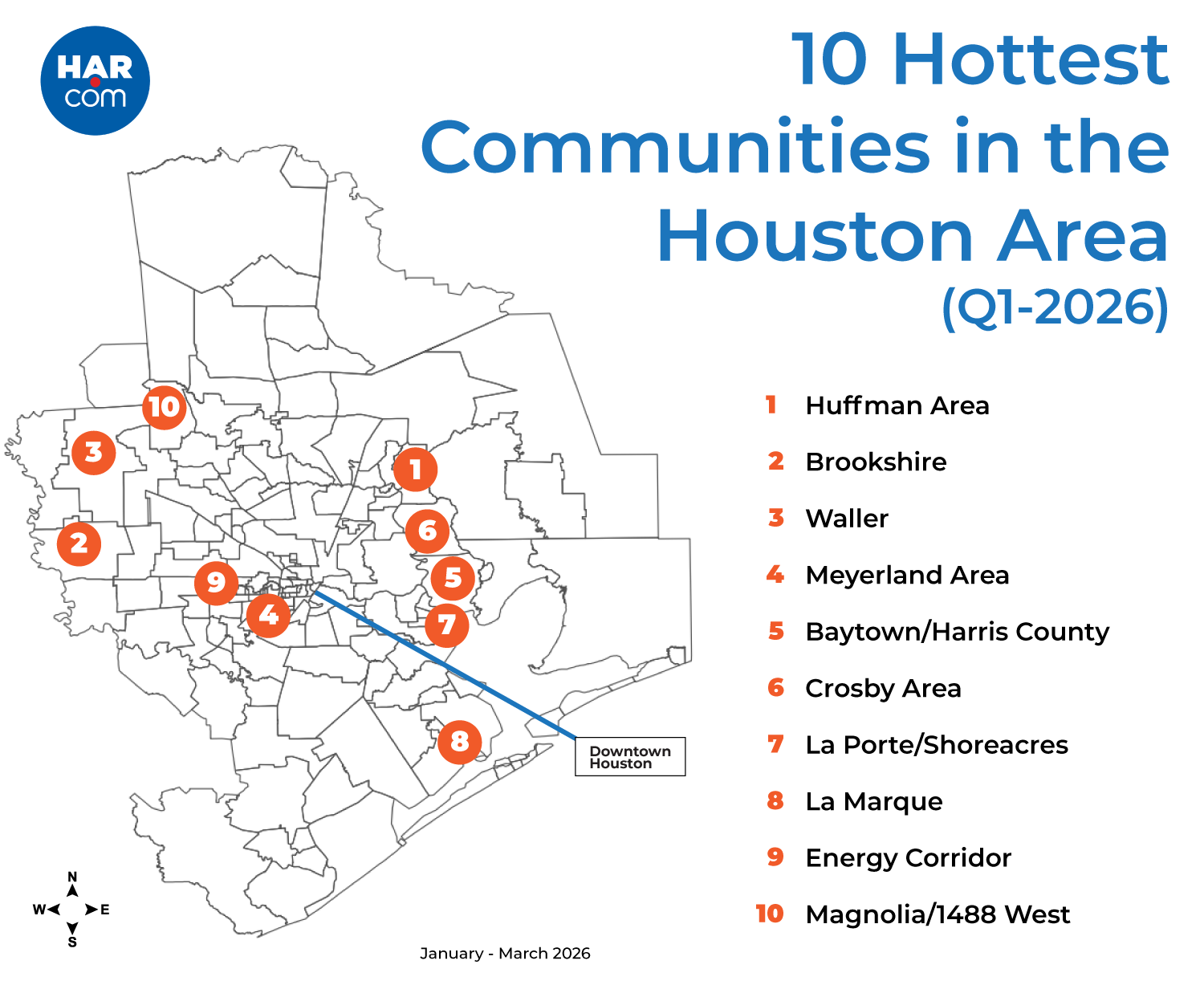 According to the Houston Association of Realtors (HAR) Hottest Communities in the Houston Area report for Q1 2026, this shift is already taking shape in where—and how quickly—homes are selling.