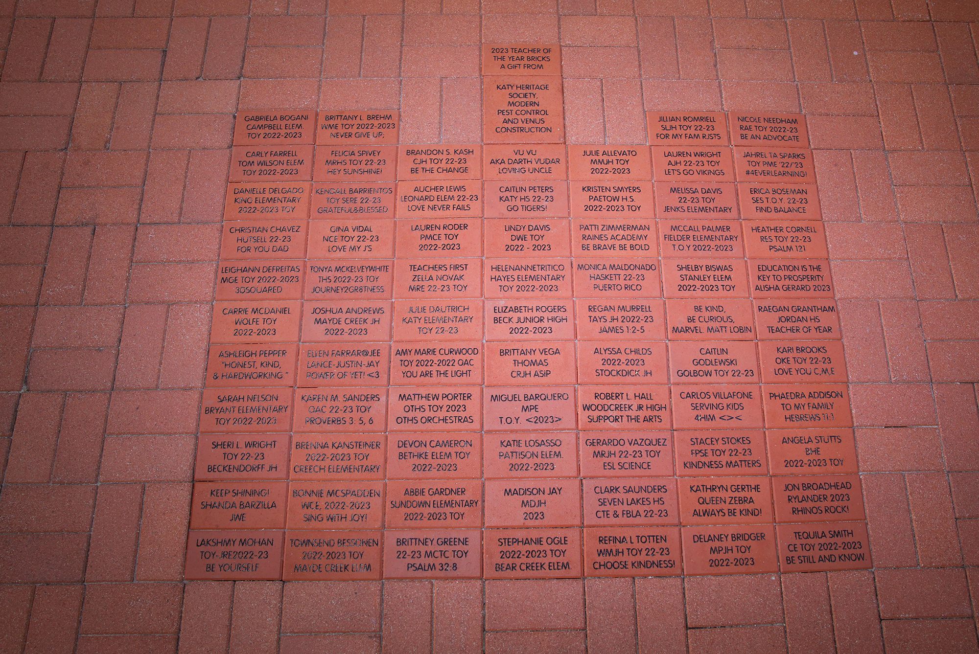 On the evening of December 5, Katy ISD came together with local event sponsors to host a special event celebrating the outstanding achievements of the 2022-23 Campus Teachers of the Year. During this annual tradition, 74 exceptional educators etch their names into history on commemorative bricks displayed at Katy Heritage Park.