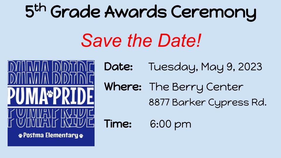 Postma Elementary 5th Grade Award Ceremony - May 9th