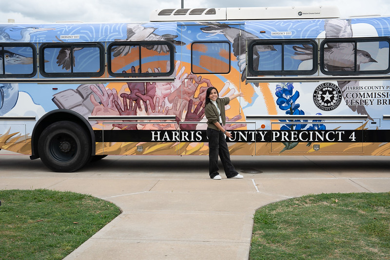 Cardenas' artwork proudly displayed on this Harris County Precinct 4 bus Commissioner Briones is calling on budding artists like Cardenas from Alief ISD, Cypress Fairbanks ISD, Houston ISD, Katy ISD, Spring Branch ISD, Waller ISD, and Tomball ISD to help beautify the Harris County Precinct 4 bus fleet with artwork that reflects the cultural perspectives and experiences of our community.
