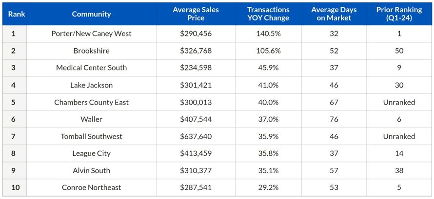 A total of nine out of the top 10 communities in the report had average home prices below the Houston area's average of $432,090, as per HAR's June 2024 Housing Market Update.